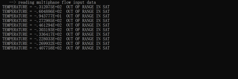 The error messages indicate that the temperature has fallen outside the valid range for calculating the water saturation pressure (which is a function of temperature). If these messages occur only occasionally, they likely reflect a transient non-physical state during Newton iteration, where an intermediate solution produces an artificially low temperature. In such cases, the simulation can usually continue without affecting the final results. However, if the temperature at certain elements truly drops below 0 °C, this may indicate that excessive heat has been extracted from the system.